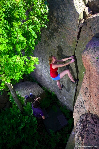 Marte leading one of many nice cracks in Bohuslen. Maja is belaying.